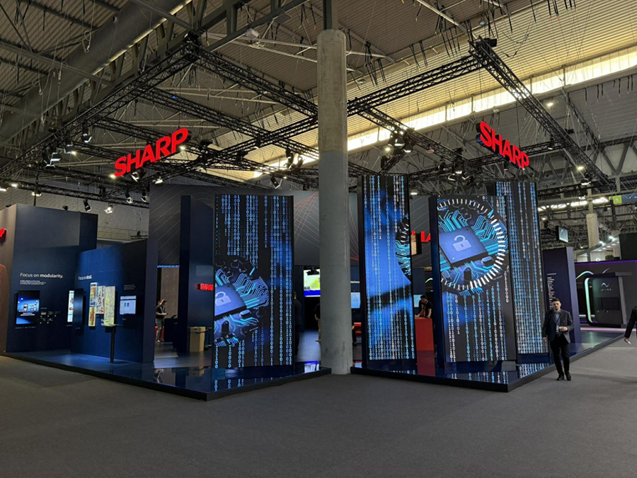 Besucher konnten die dvLED-Serie mit Cob-Technologie und das Sdm Mpi5 Kit, eine modulare Computing-Plattform mit Raspberry Pi Compute Module 5 sowie interaktive Displays der Lb3-Serie erleben. Außerdem wurde der Pcap Touch Table mit eyefactive präsentiert. Der 55-Zoll-Tisch wurde in Zusammenarbeit der beiden Unternehmen entwickelt und soll ein interaktives Mehrnutzer-Erlebnis für Einzelhandel, Gastgewerbe und Bildungswesen ermöglichen. Auch das erweiterte Projektor Portfolio von Sharp wurde gezeigt. Es nutzt Rb-Lasertechnologie für Farbdarstellung und Detailgenauigkeit.